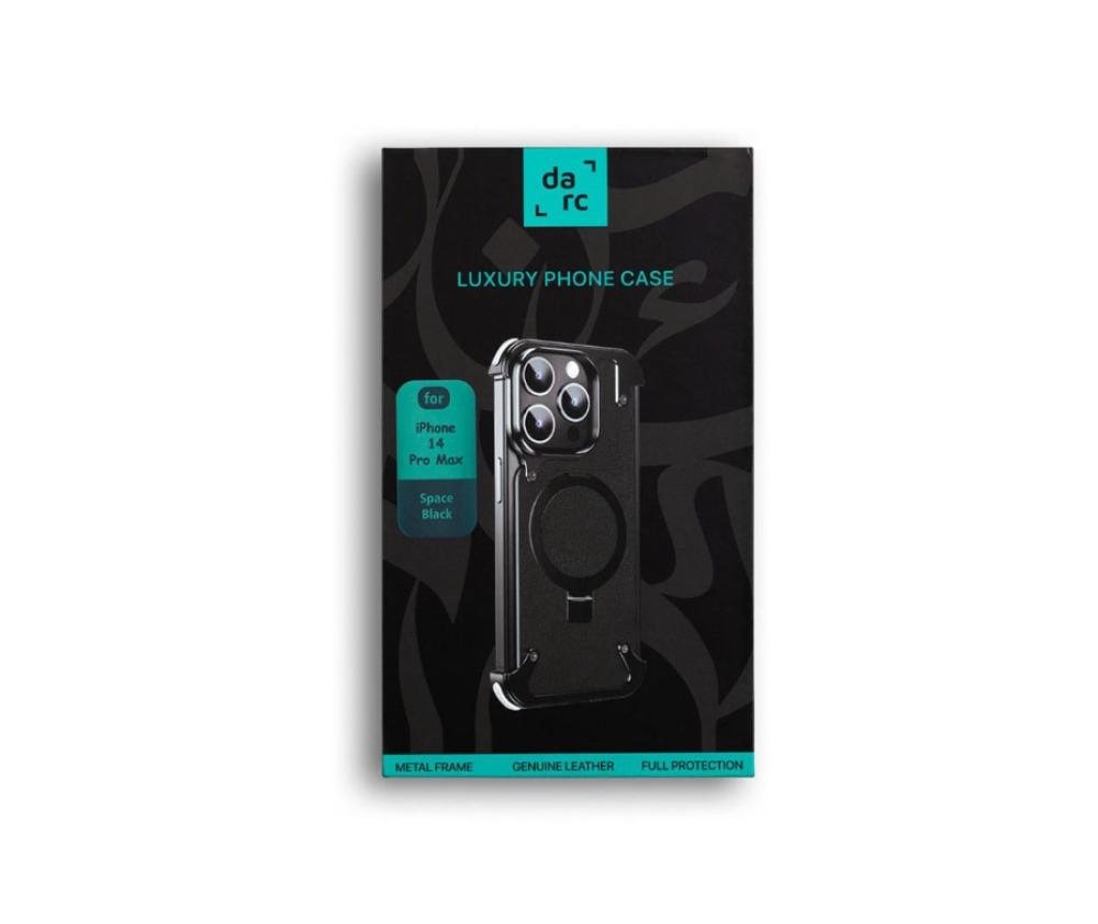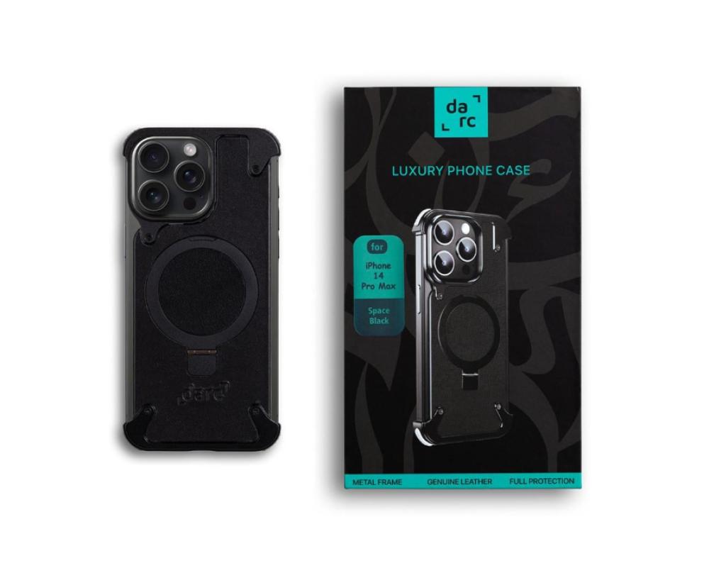دارك - جراب جلد لهاتف الايفون 14 مقاوم للصدمات اسود