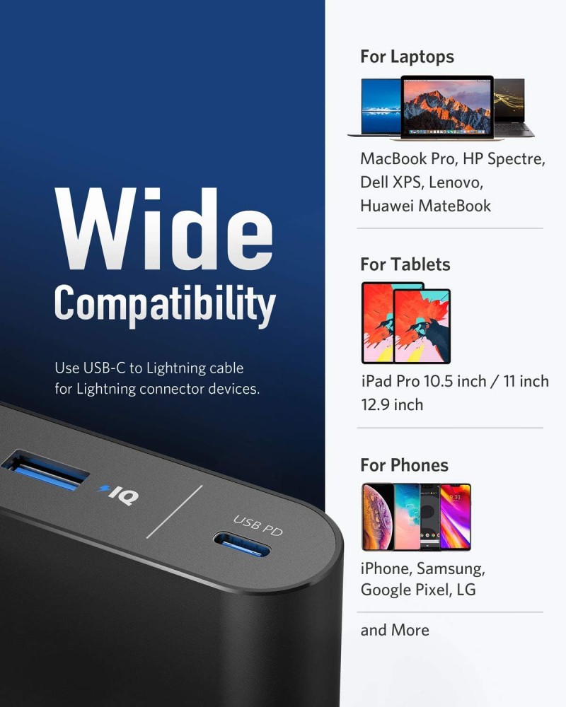 - سعة خلية هائلة: مع سعة خلية هائلة تبلغ 26800 مللي أمبير في الساعة، يمكنك شحن ايفون اكس 6 مرات، وجالكسي اس 9 5 ونصف مرة، أو توفير شحن كامل لجهاز ماك بوك برو 13 انش أو ديل اكس بي اس 13.