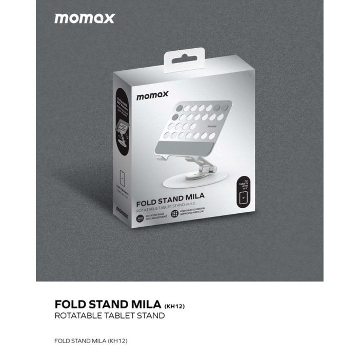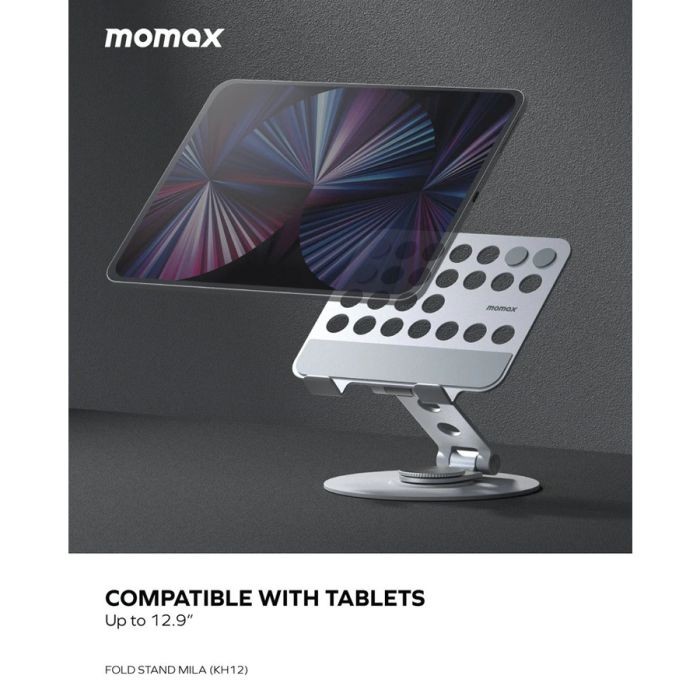 حامل تابلت وايباد من موماكس قابل للطي والدوران بدرجة 360 مصنوع من الألمنيوم (فضي)