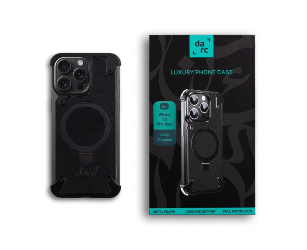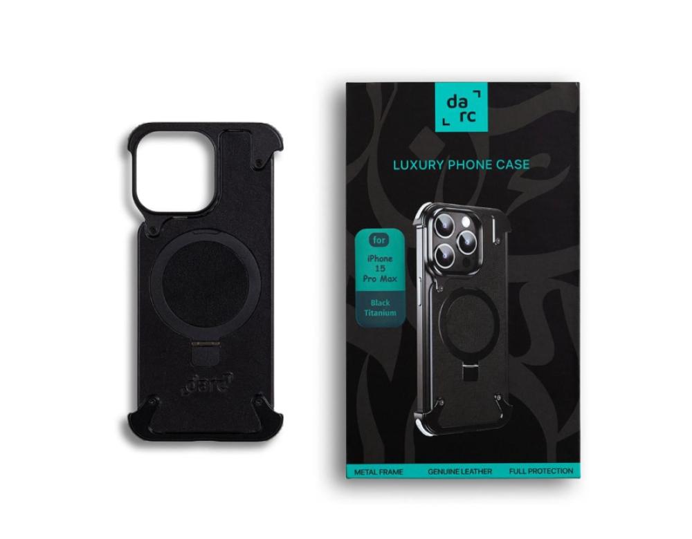 دارك - جراب جلد لهاتف الايفون 15 مقاوم للصدمات اسود