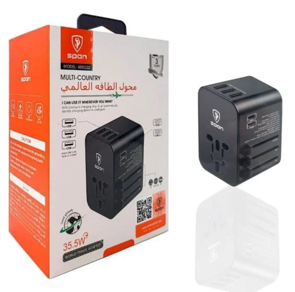 شاحن السفر العالمي 6 في 1 متعدد المنافذ من SPON